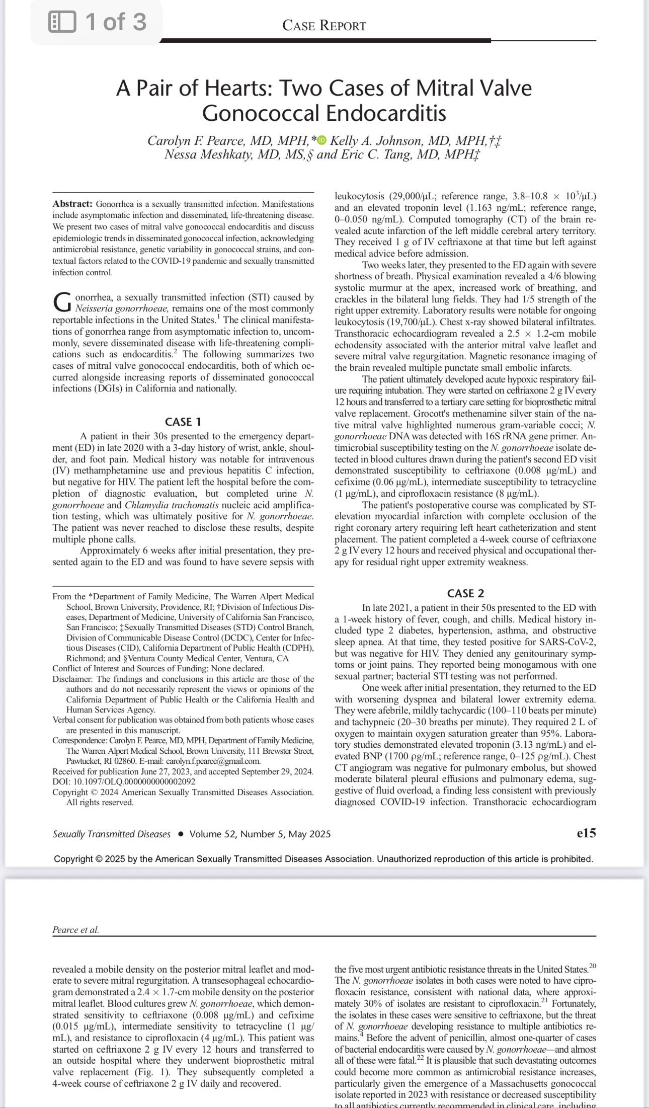 Gonorrhea endocarditis was unheard in the modern days pre-COVID. Largely due to effective public health efforts.