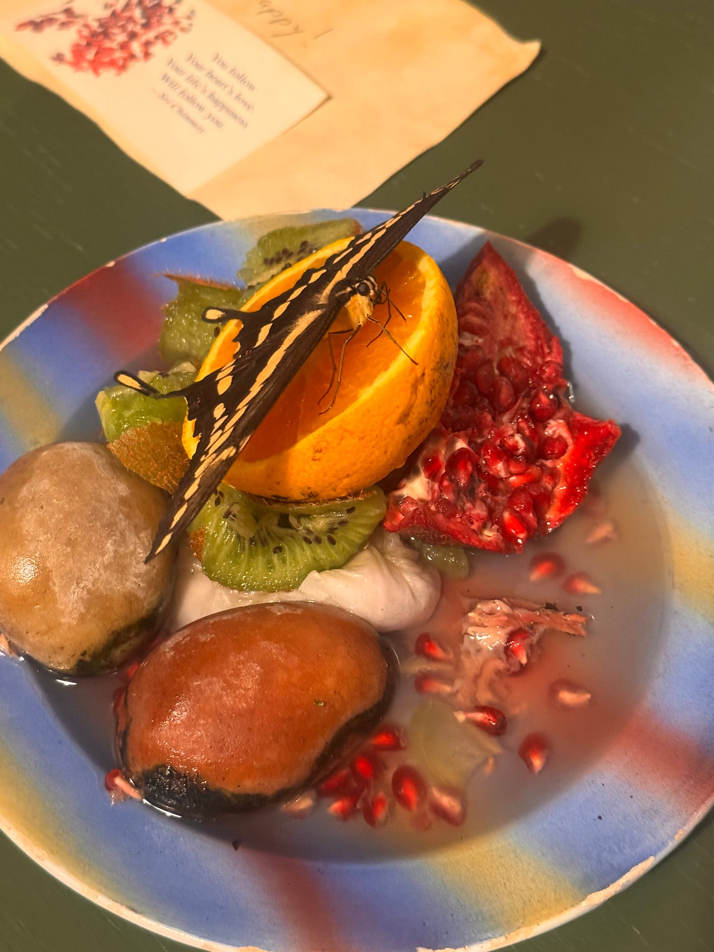 On 11/3/25, I spent the night with a male Swallowtail butterfly. It was a beautiful accidental encounter. I found him near death on the ground out back. I discovered he was male and read that swallowtails only live 2-4 weeks short. I figured his transition was nearing. I brought the grandfather inside for 1 night of warmth and fruit.